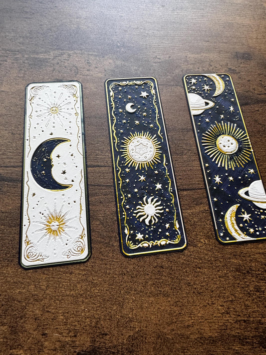 Celestial Dreams Bookmark Set – Moon, Stars & Planets Fantasy Bookmarks | Cosmic Aesthetic 3D Printed Bookmarks (Set of 3 or Individual)