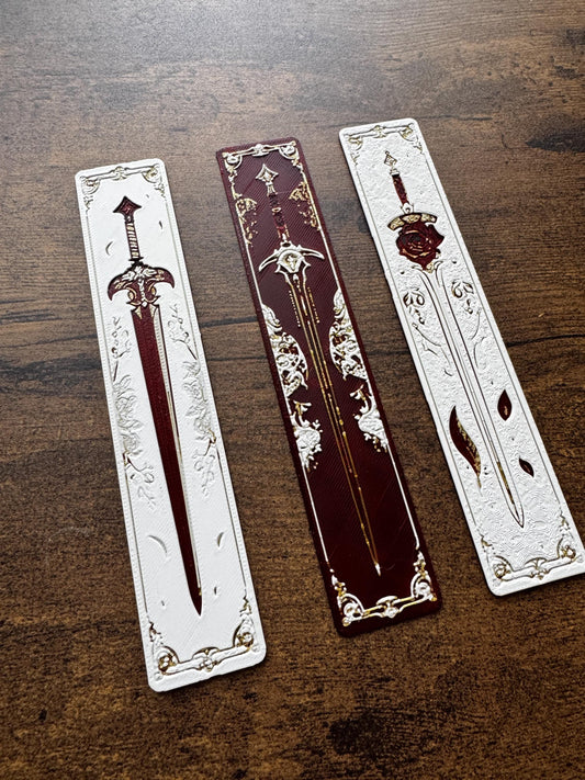 Blade and Blossom Bookmark Set – Fantasy Sword & Flower Bookmarks in Red, White and Gold | Aesthetic Page Markers (Set of 3 or Individual)