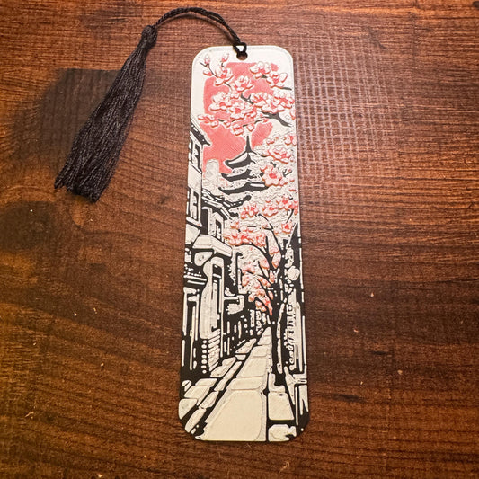 Cherry Blossom Bookmark Set – Pink Blossoms on Black & White Japanese-Inspired Design | 3D Printed Elegant Bookmarks with Black Tassel